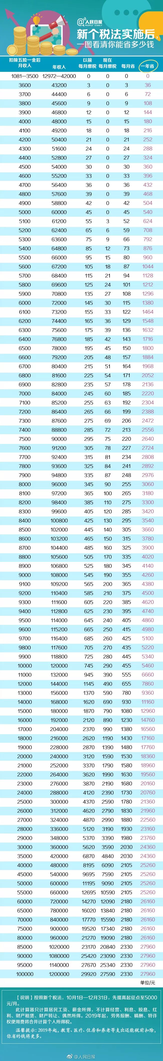 8月31日,新个税法通过,个人所得税的起点由此前的每月3500调整至每月5000,并将于今年10月1日起正式开始实行。意味着大家缴纳的个税将降低,真是一个“普天同庆”的好事!