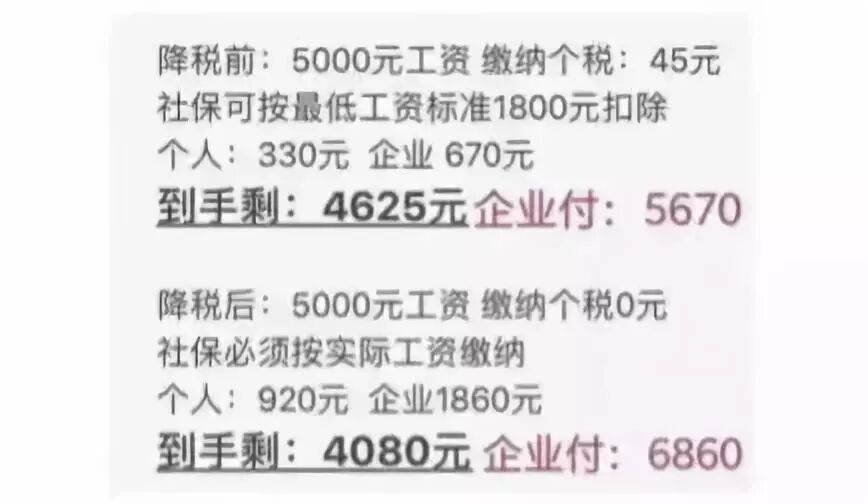 需要强调的是,对于一直按照实际工资缴纳社保的人来说,在税前工资没变的情况下,降税后,到手工资其实是增加的。